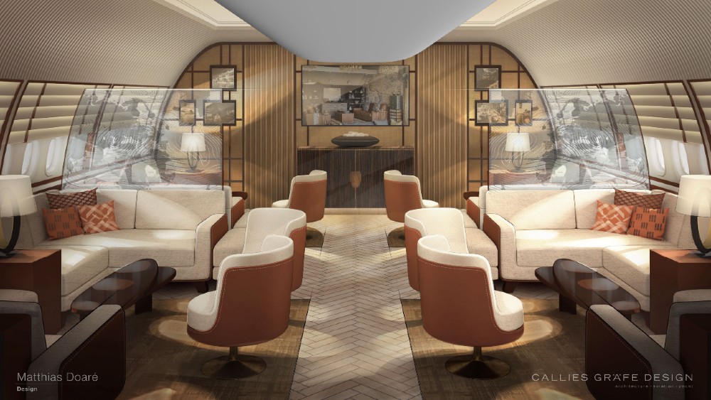 εταιρεία Camber Aviation Management συνεργάστηκε με το στούντιο Callies Gräfe Design και παρουσίασαν τα εντυπωσιακά ομολογουμένως σχέδια του BBJ 777-200LR, ενός αεροσκάφους χωρητικότητας 80 επιβατών, με χώρους ενός μοντέρνου πολυτελούς ξενοδοχείου. Η ιδέα είναι, ο επιβάτης να μπαίνει μέσα από τους χώρους του σαλονιού, αντί να επιβιβάζεται στο τζετ και να πρέπει να περάσει μπροστά από σειρές θέσεων επιβατών. Η ομάδα σχεδιασμού συνδύασε την ιταλική σχεδίαση υψηλών προδιαγραφών, που απευθύνεται μεταξύ άλλων σε αθλητικές ομάδες, ακόμη και σε ομάδες μουσικών, που χρειάζονται χώρο για τη μεταφορά εξοπλισμού και οργάνων.