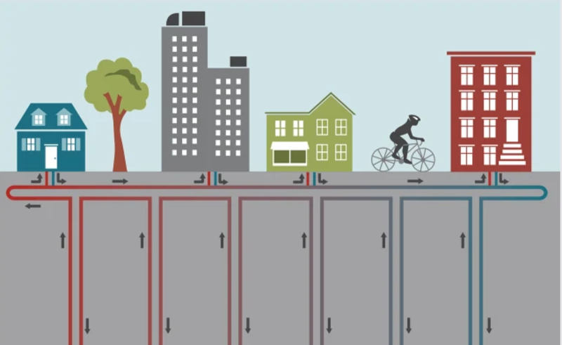 Στο Framingham, το Eversource θα χρησιμοποιήσει ένα σύστημα σωλήνων με βρόχο που φτάνει εκατοντάδες πόδια κάτω από το επίπεδο του δρόμου. Το χειμώνα, το υγρό που ρέει μέσω του σωλήνα θερμαίνεται από την υπόγεια θερμοκρασία και στη συνέχεια μεταφέρει αυτή την ενέργεια σε αντλίες θερμότητας στα κτίρια. Το καλοκαίρι, η υπερβολική θερμότητα από τα κτίρια στέλνεται πίσω υπόγεια, παρέχοντας κλιματισμό. Η ηλεκτρική ενέργεια από το δίκτυο, η οποία επίσης κινείται προς τις ανανεώσιμες πηγές ενέργειας, τροφοδοτεί τις αντλίες θερμότητας και χρησιμοποιείται για τη μετακίνηση του υγρού πάνω-κάτω στο δρόμο στον κοινόχρηστο σωλήνα.