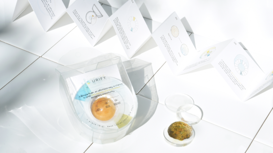 Η σχεδιάστρια Yidan Xu έχει δημιουργήσει το Urify, ένα δισκίο καθαρισμού τουαλέτας διπλής χρήσης που διαλύεται στην λεκάνη και αλλάζει χρώμα όταν ανιχνεύει τη ουλήτρα, έναν πρώιμο βιοδείκτη της νεφρικής δυσλειτουργίας. Ο σχεδιασμός μετατρέπει ένα κοινό οικιακό δισκίο καθαρισμού σε ένα εργαλείο έγκαιρης διαλογής για τη νεφρική νόσο.