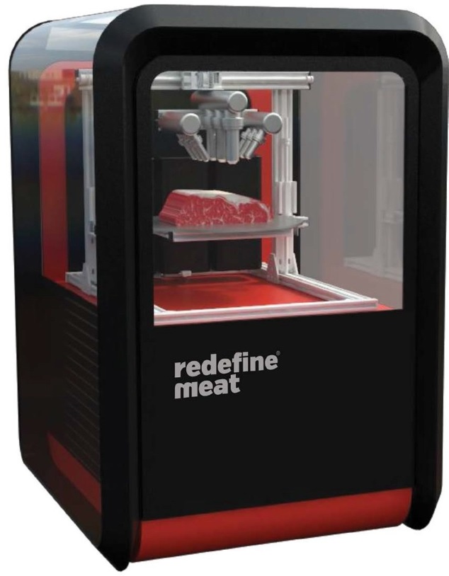 Μια νεοσύστατη εταιρεία στο Ισραήλ, η Redefine Meat, χρησιμοποιεί τρισδιάστατη εκτύπωση βιομηχανικής κλίμακας για να παράγει μπριζόλα από φυτικές πρώτες ύλες, που κατά την εταιρία έχει δομή και υφή παρόμοια με αυτή της πραγματικής.
