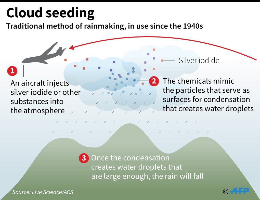 Πρόκειται για μια τεχνική τροποποίησης του καιρού που προβλέπει την προσθήκη χημικών ουσιών –όπως μικρών σωματιδίων ιωδιούχου αργύρου– στα σύννεφα προκαλώντας τη συγκέντρωση σταγονιδίων νερού γύρω τους αυξάνοντας έτσι την πιθανότητα βροχόπτωσης.