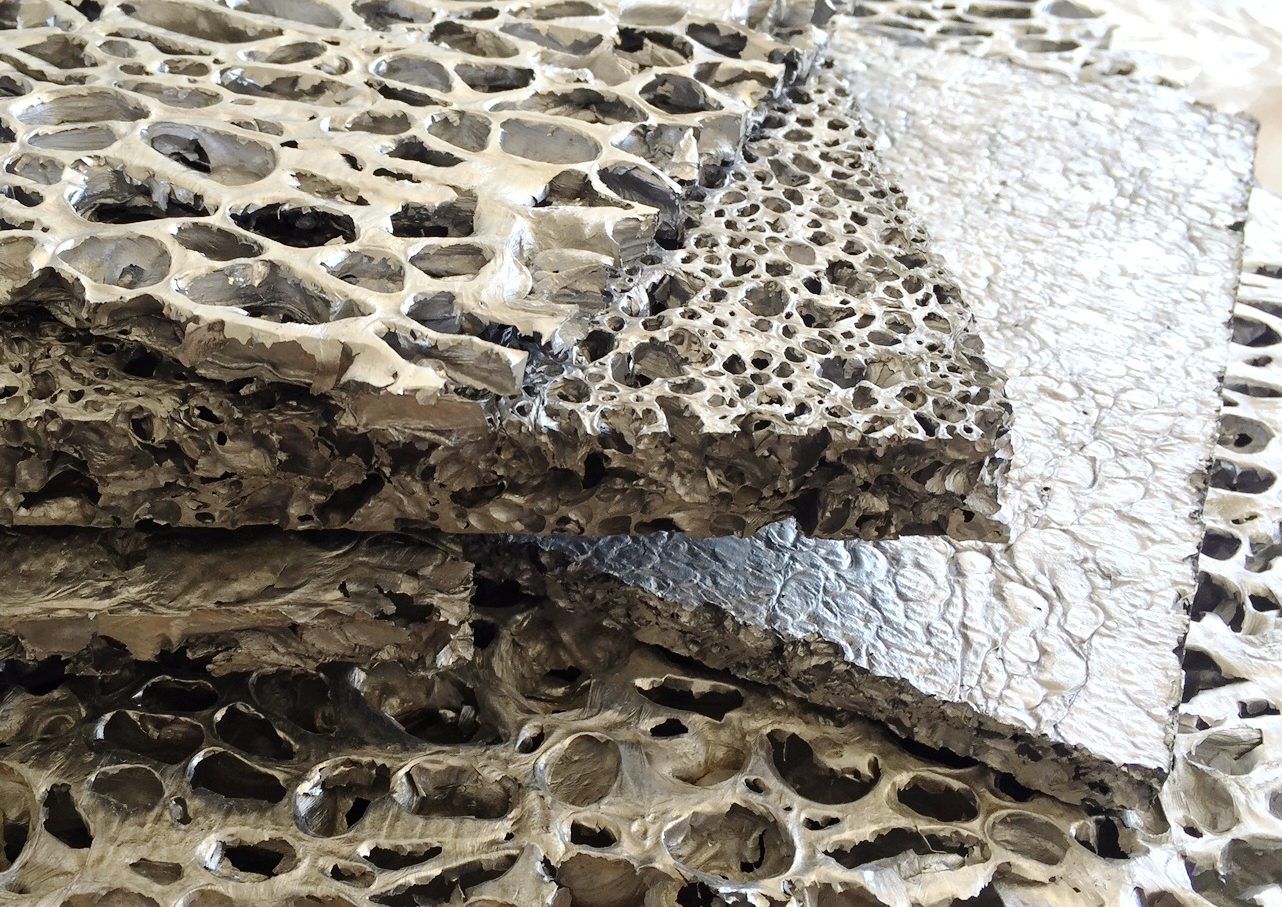 Η ποικιλία των υλικών που χρησιμοποιούνται για οροφές, δάπεδα και επενδύσεις περιορίζεται συχνά σε τούβλα, λαμαρίνες, σκυρόδεμα ή βαμμένο σοβά. Η εταιρεία Cymat Technologies στον Καναδά κατασκεύασε ένα υλικό, το ALUSION όπου υποστηρίζεται ότι είναι μοναδικά ευέλικτο και κατάλληλο για την κάλυψη κτιρίων, θυρών, δαπέδων. Οι επιστήμονες ανακάλυψαν έναν τρόπο έγχυσης αέρα σε λιωμένο αλουμίνιο που σχηματίζει φυσαλίδες χάρη στη διασπορά των κεραμικών σωματιδίων στο μείγμα. Εκτός από το εντυπωσιακό σχεδιαστικό υλικό, το ALUSION προσφέρει πλεονεκτήματα μείωσης θορύβου, είναι πλήρως ανακυκλώσιμο, ιδιαιτέρως ισχυρό και άκαυστο. Το υλικό είναι κατασκευασμένο από σταθεροποιημένο αφρό αλουμινίου. Κατασκευασμένο ως συνεχόμενα επίπεδα φύλλα, δημιουργεί ισχυρά, ελαφριά πάνελ, παρόμοια σε εμφάνιση με μεταλλικό σφουγγάρι, με σχεδόν απεριόριστες εφαρμογές σχεδίασης και αρχιτεκτονικής. Επίσης προσφέρει διακοσμητικές λύσεις καθώς κάθε πλευρά του πάνελ φαίνεται εντελώς διαφορετική. Επιπλέον, δίνει ατελείωτες δημιουργικές λύσεις επένδυσης: από μια συμπαγή, αστραφτερή εμφάνιση έως μια ημιδιαφανή εμφάνιση «αφρού νερού».