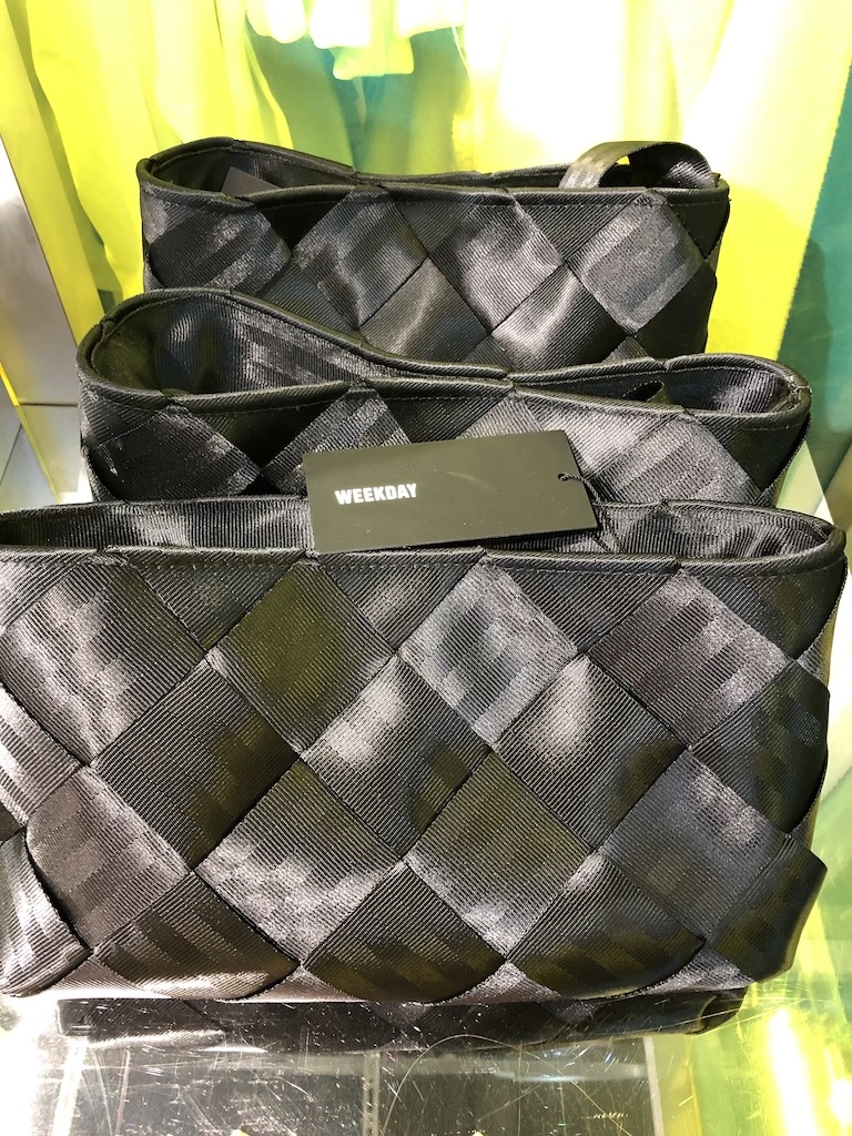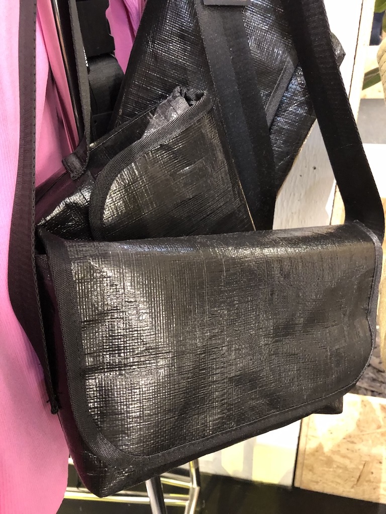 Στην φωτό τσάντες, στο κατάστημα του Μονάχου, που κατασκευάζονται από χρησιμοποιημένες ζώνες αυτοκίνητου.